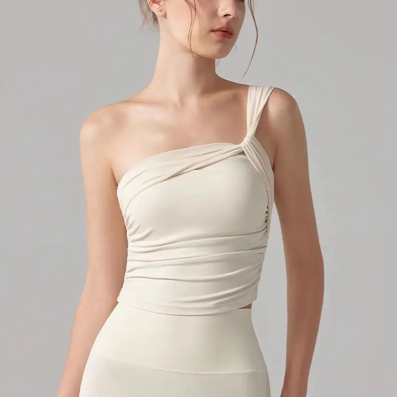 One-shoulder Wrapping Chest Yoga Vest for Women Fixed Cup Tight