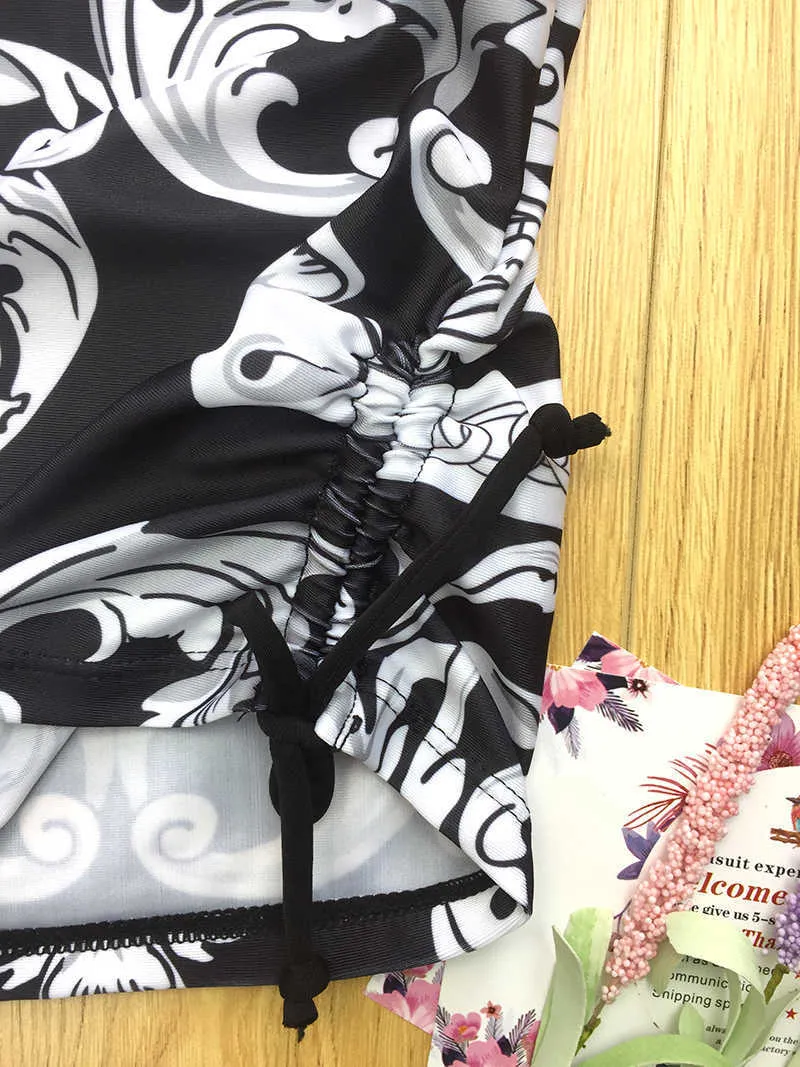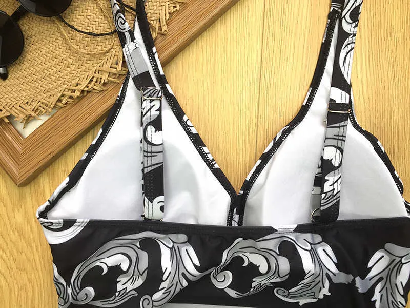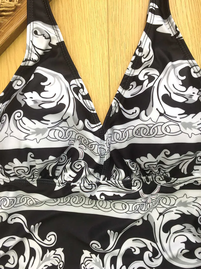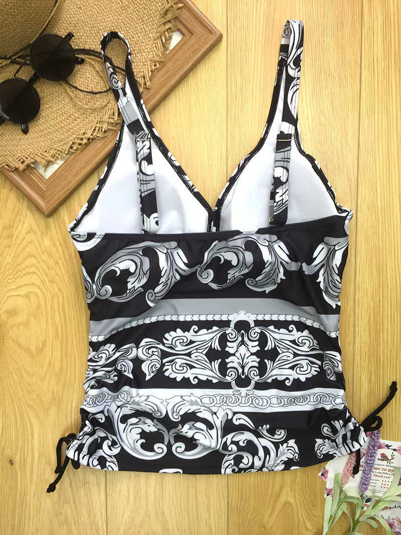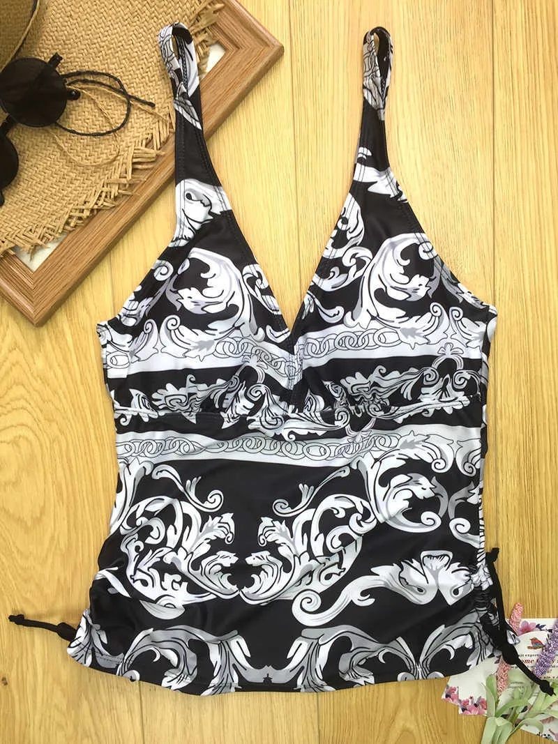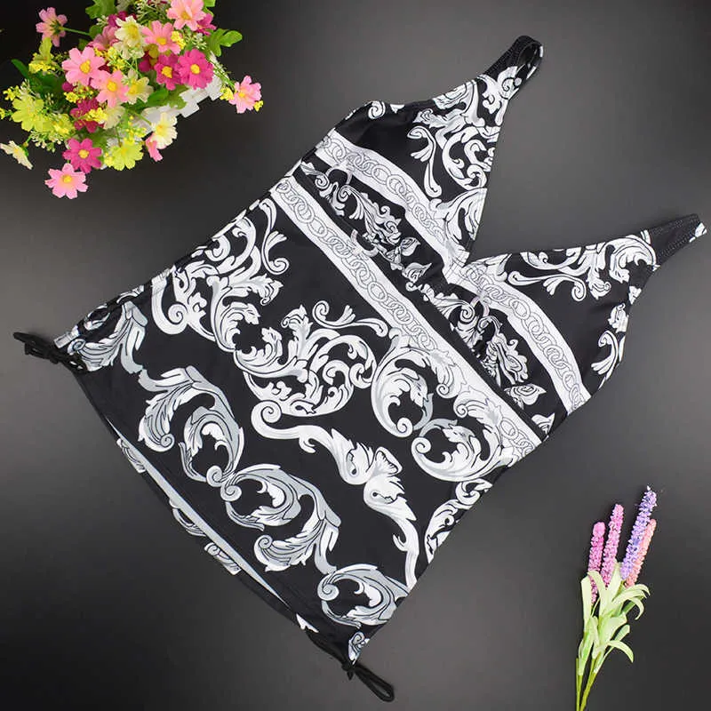 Two Piece Swimwear Women Tankini Swimsuits with Shorts V neck Tankinis Set Swim Wear Black Print Bathing Suit