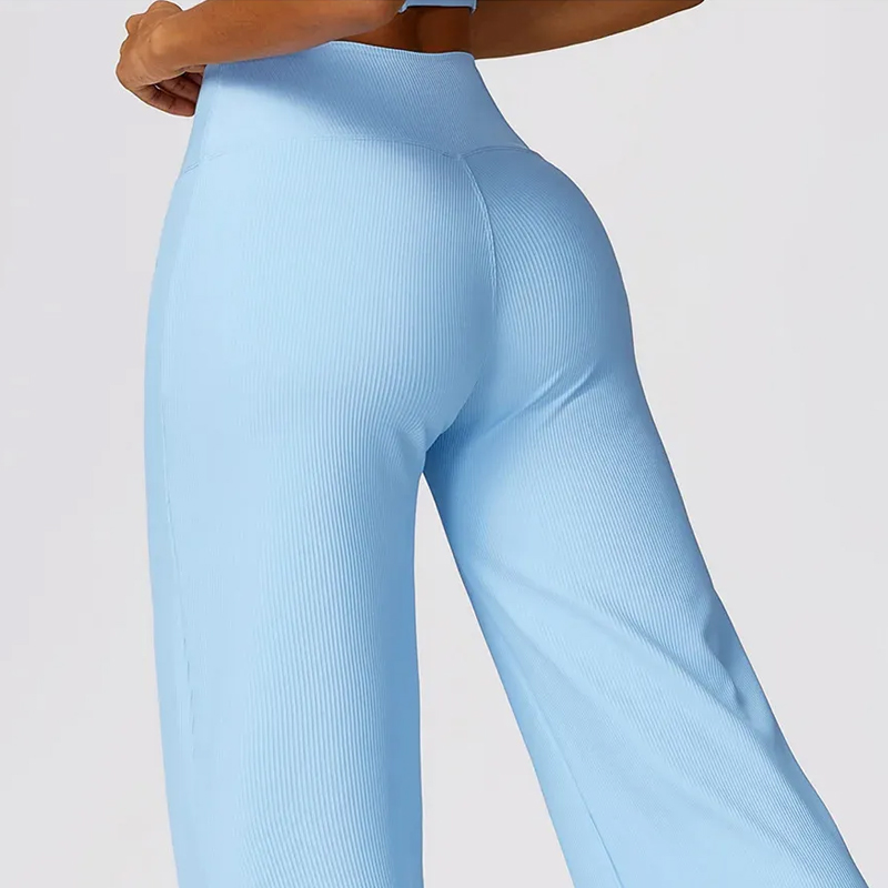 Occasion: Sports Style: Casual Type: Pants Material: Spandex Gender: Female Fit: Flared Pants Length: Long Pants Category: Yoga Wear Color:Light-blue Size:S-L..